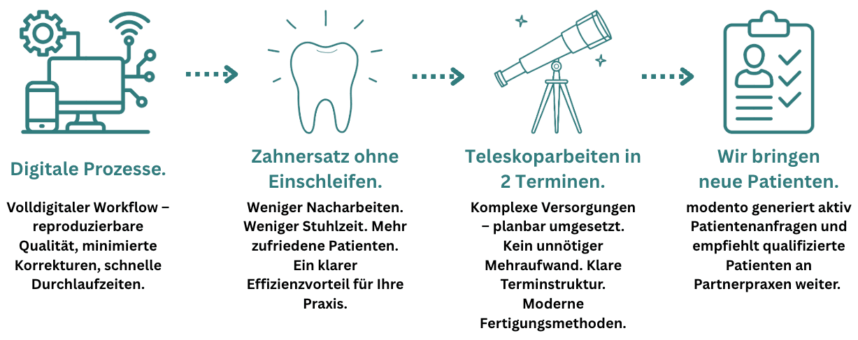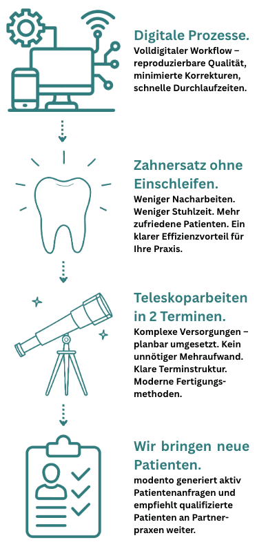 modento steht für moderne Zahntechnik, unternehmerisches Denken und langfristige Partnerschaften.